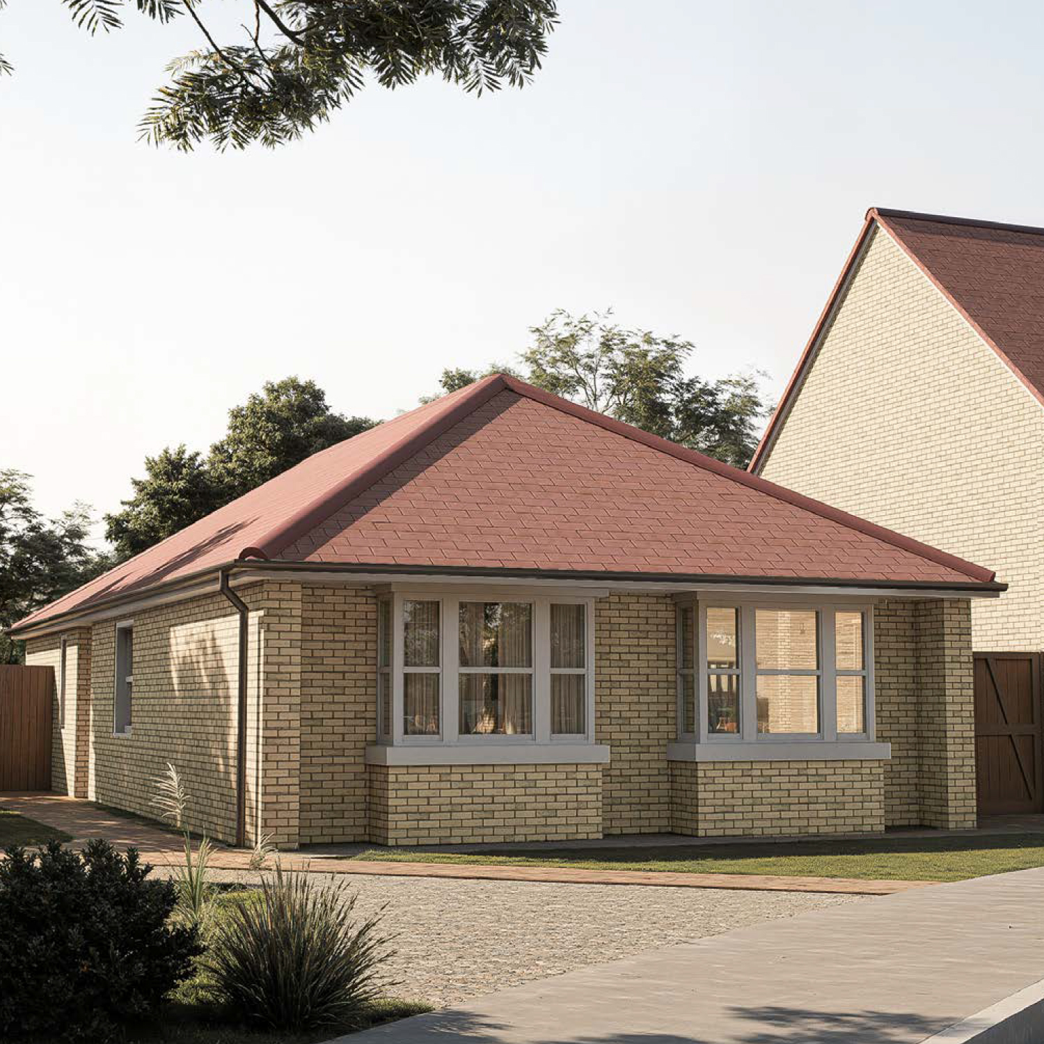 The Amulree — a light brick bungalow with red tiled roof and bay window, offering single-storey comfort and timeless design at Gleneagles Drive, Spalding.