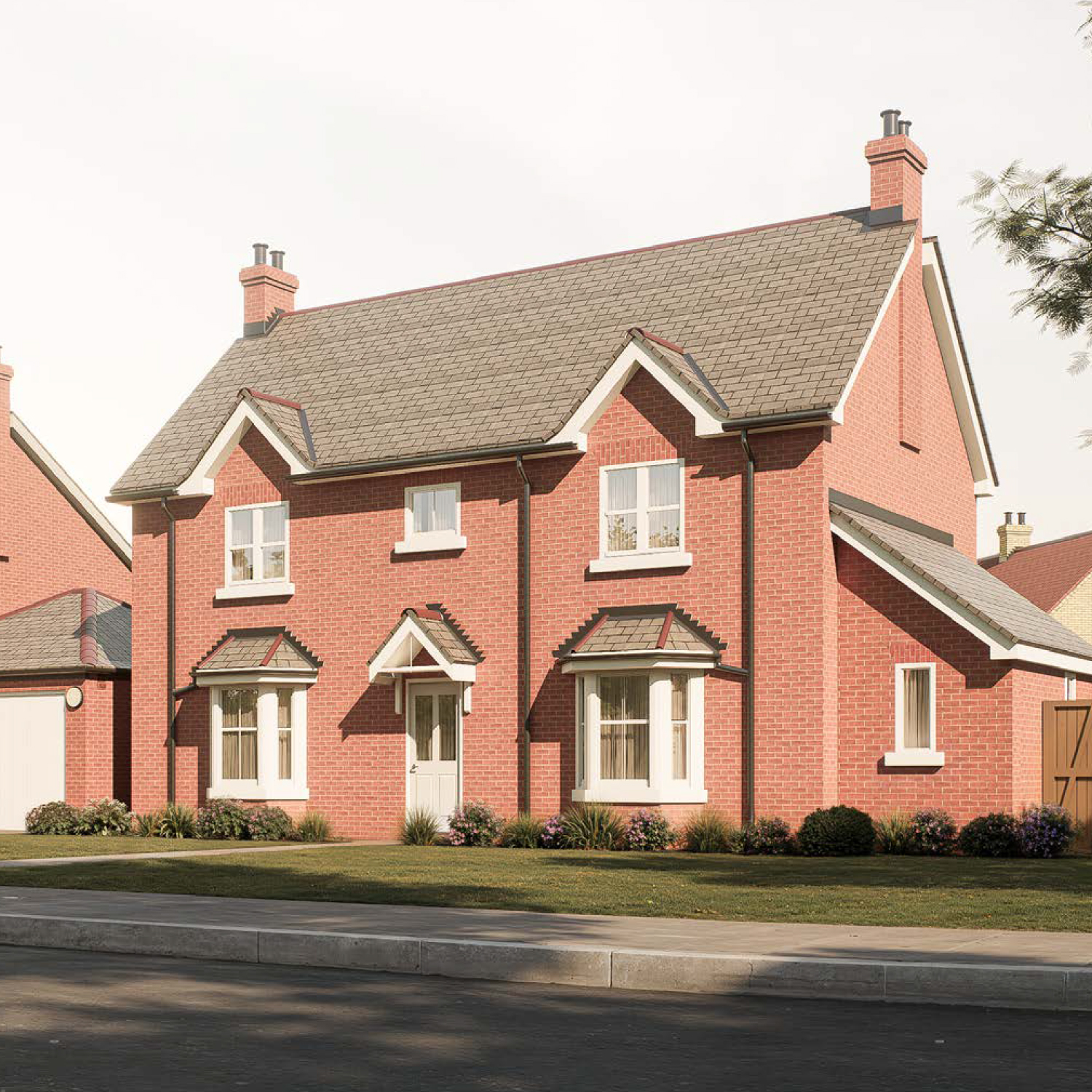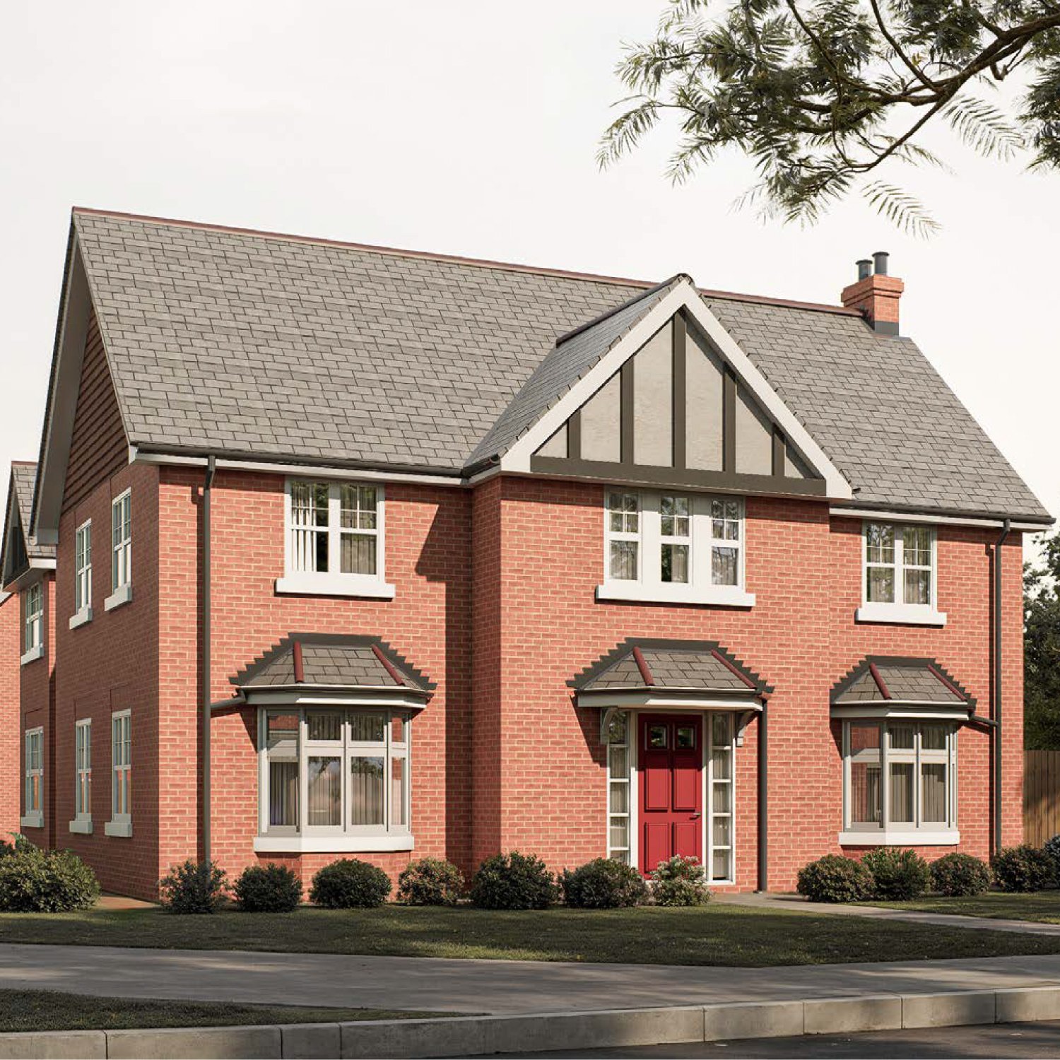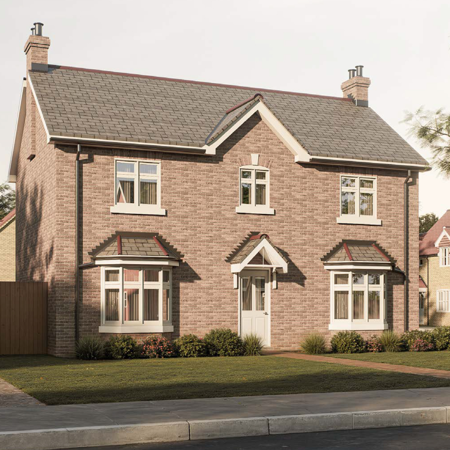 The Pitlochry — an elegant red-brick family home with twin bays, pitched slate roof and detailed porch styling, offering spacious living at Gleneagles Drive.
