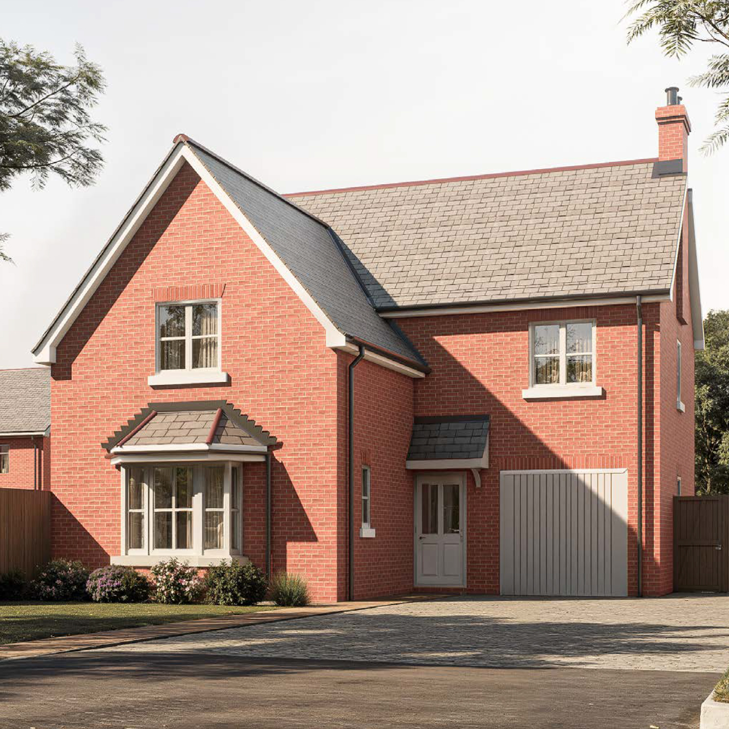 The Kindrogan — a red-brick detached home with gabled roof, garage, and large bay window, offering generous family living space within the Gleneagles Drive community.