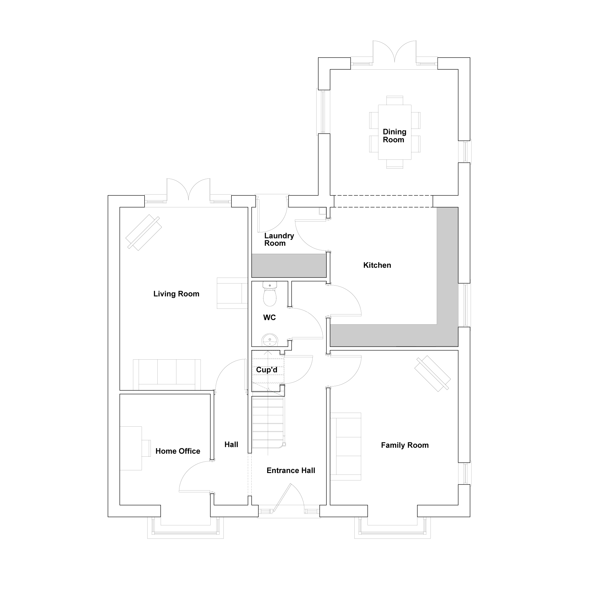 From the entrance hall, you’re welcomed into a front family room – an ideal space for relaxing, working, or spending time together. At the heart of the home, the bright and airy kitchen dining area creates a central hub for everyday life, with French doors opening out onto the rear garden to bring in natural light and extend the space outdoors. A separate utility room adds practicality, while a generous sitting room overlooking the garden offers a quieter place to unwind. A dedicated home office and under-stair storage complete the ground floor, supporting the needs of modern living.